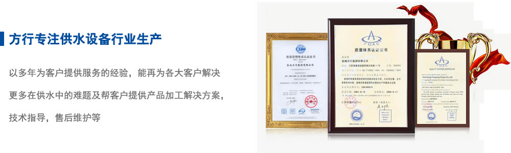 鹽城方行集團(tuán)有限公司創(chuàng)建于一九七七年,四十多年來(lái),在各級(jí)領(lǐng)導(dǎo)、國(guó)家行業(yè)協(xié)會(huì)和大專院校的大力支持幫助下,現(xiàn)已發(fā)展成為一家集研發(fā)、設(shè)計(jì)、生產(chǎn)、銷售、安裝、服務(wù)于一體的給排水設(shè)備企業(yè)。產(chǎn)品優(yōu)良,注重品牌。本公司先后榮獲“明星企業(yè)”、“中國(guó)鄉(xiāng)鎮(zhèn)明星企業(yè)”、“中國(guó)馳名品牌”等榮譽(yù)稱號(hào)。“方行”牌玻璃鋼夾砂管道、水箱被江蘇省建設(shè)廳指定為推廣產(chǎn)品;污水處理設(shè)備被專家評(píng)定為國(guó)家級(jí)新產(chǎn)品;方行牌玻璃鋼夾砂管道、玻璃鋼貯罐、一體化預(yù)制泵站、生活、消防箱泵一體化、污水處理設(shè)備、玻璃鋼水箱、不銹鋼水箱等產(chǎn)品先后被評(píng)為鹽城市名牌產(chǎn)品,江蘇省優(yōu)質(zhì)產(chǎn)品,江蘇省名牌產(chǎn)品。公司技術(shù)和售后服務(wù)日臻完善。在同行中享有很高的知名度、美譽(yù)度。以信為本,廣拓業(yè)務(wù)。本公司始終恪守“持之以恒、誠(chéng)信為本”的經(jīng)營(yíng)宗旨,持續(xù)發(fā)揚(yáng)自強(qiáng)不息,順勢(shì)而上,趨利避弊,不斷推動(dòng)產(chǎn)品發(fā)展,為我國(guó)的給排水工業(yè),為我們的民族工業(yè)品牌的發(fā)展而做出自己的貢獻(xiàn)。堅(jiān)持革新,與時(shí)俱進(jìn)。公司一貫跟隨社會(huì)的發(fā)展堅(jiān)持不斷革新、嚴(yán)謹(jǐn)規(guī)劃、精益求精的質(zhì)量方針。公司著重于環(huán)保新技術(shù)及給排水設(shè)備的創(chuàng)新研發(fā),已擁有多項(xiàng)國(guó)家專利技術(shù)。